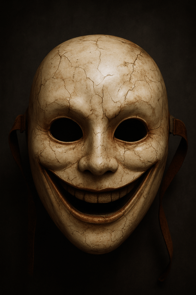 It was a porcelain mask. The same one that Happy had, only this one wasn’t charred from the furnace. His heart began to pound as if drums were in his chest. His hands caressed the entirety of the mask and felt the smoothness.
